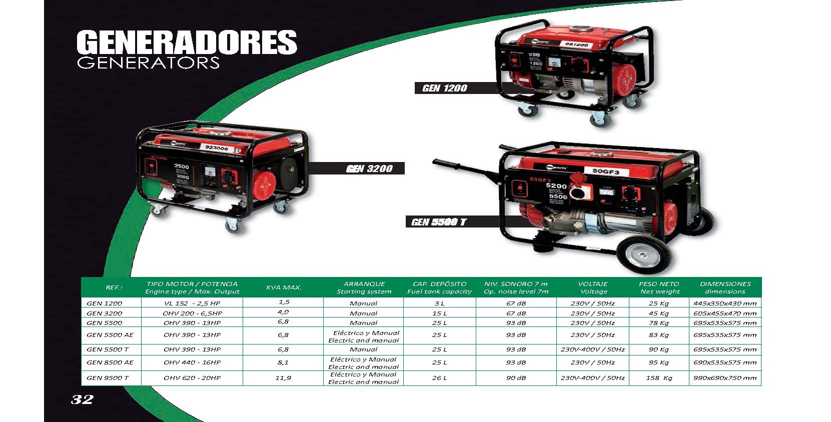 GENERADORES ELECTRICOS GRUPOS ELECTROGENOS TRIFÁSICAS 3.000 rpm - de 12,0 a 25 kVA 1.500 rpm - de 25,0 a 64,8 kVA