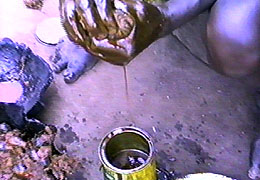 para ser machacado con fuerza, luego depositado en un recipiente |
