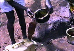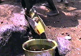que es recogido, en un cazo, es envasado y listo para llevar al mercado |