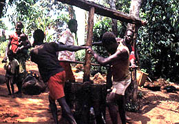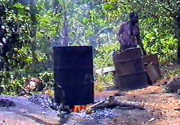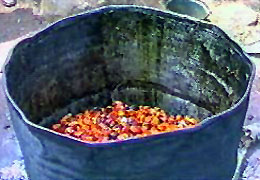 | donde es calentado con agua para ablandarlo, (cerdos alimentandose de los despojos) | |